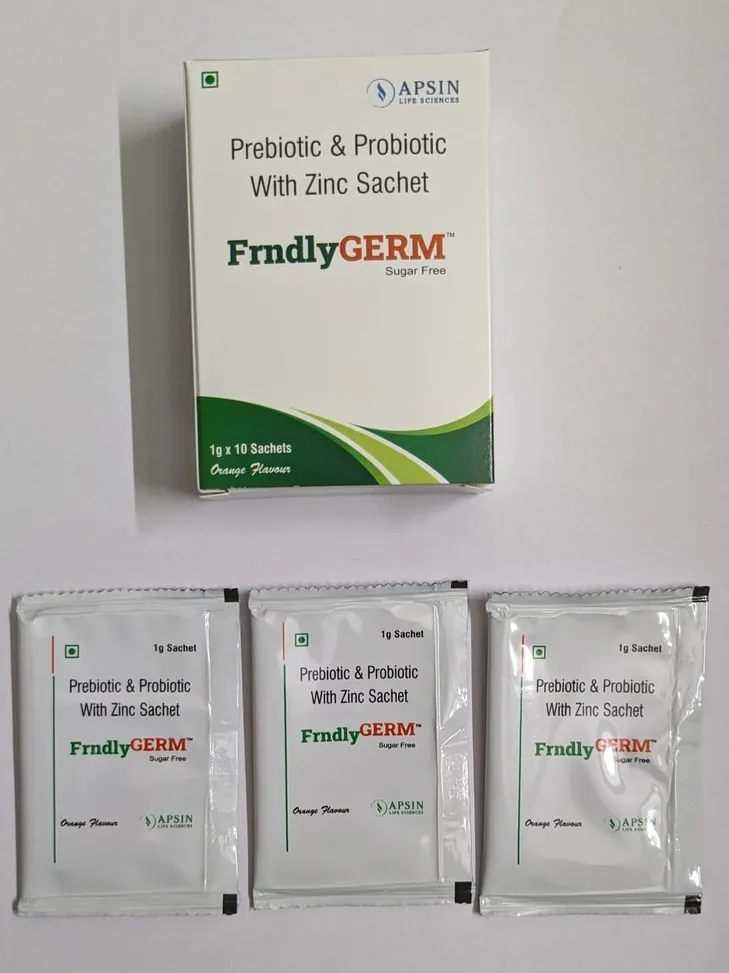 sachet with multi-beneficial bacteria, prebiotic fructooligosaccharide, and zinc for gut